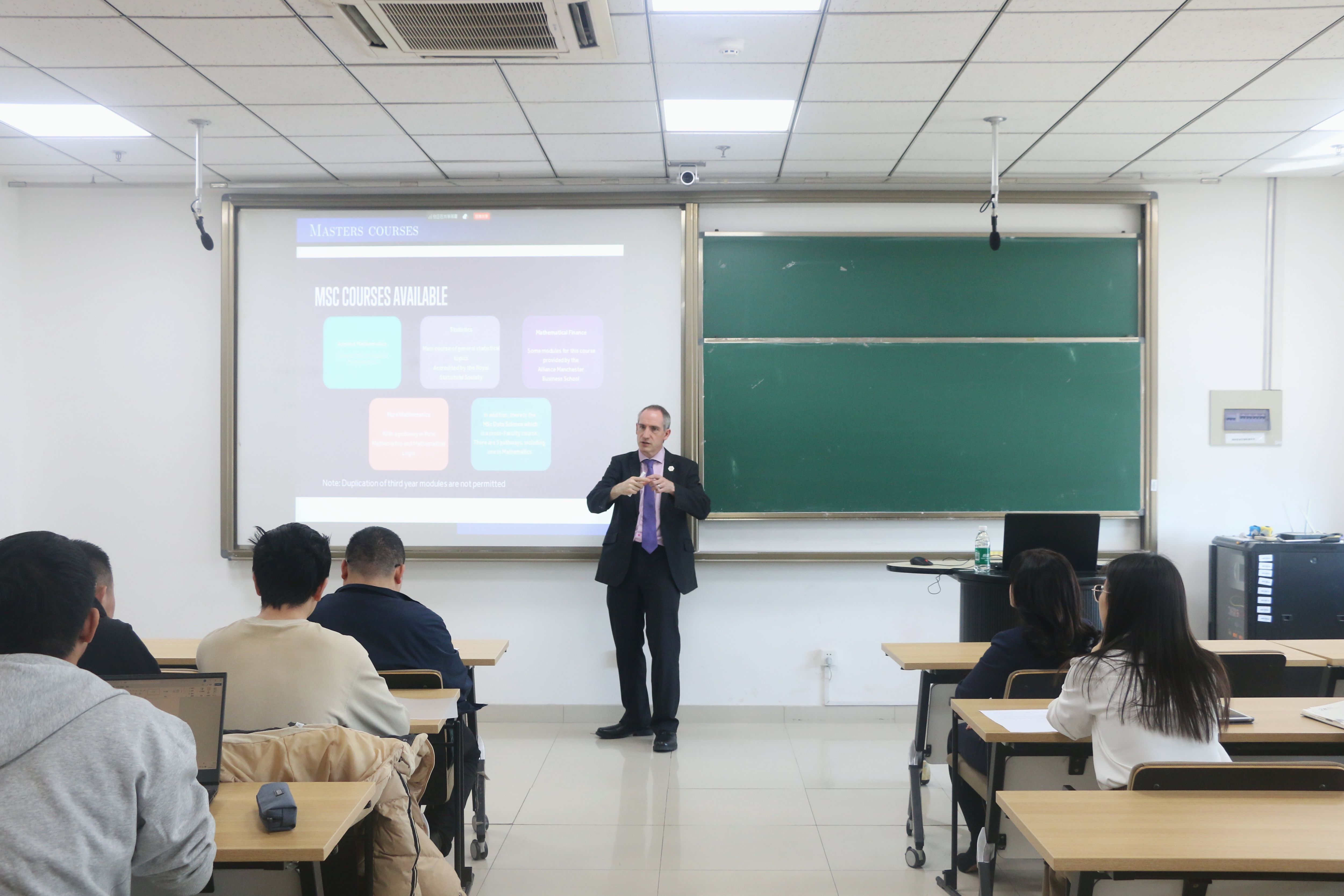 会后,曼彻斯特大学与英国正版365官方网站“2+2”双学位联合培养项目宣讲会在英国上市公司365成功举办。Andrew Hazel和Yang Han为与会师生详细介绍了曼大历史、曼大英国上市公司365的学科实力和“2+2”项目信息,并在答疑环节针对项目录取条件、生活成本等问题进行耐心解答,现场反响积极。宣讲会采取线上、线下相结合的形式,英国上市公司365、数学与统计学院领导班子成员、相关工作人员和员工代表参加会议。