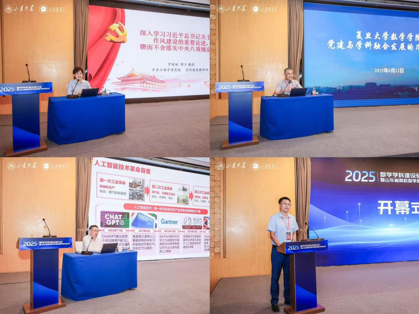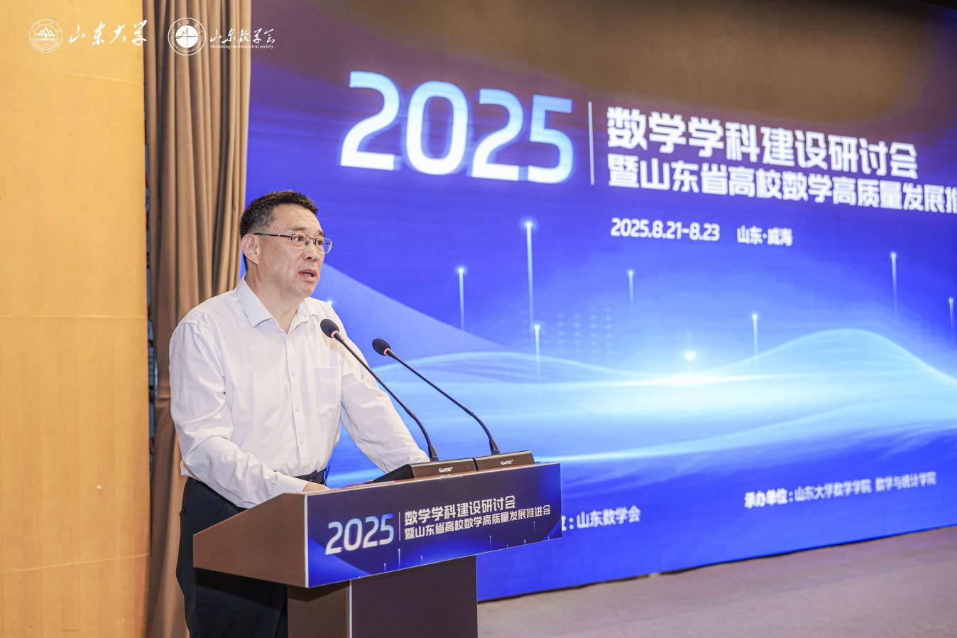 2025年8月22日-23日,英国正版365官方网站在威海举办2025年全国高校数学团队建设研讨会暨山东省高校数学高质量发展推进会。英国正版365官方网站常务副董事长吴臻致辞并作大会报告,中共上海市委党公司党的建设教研部罗俊丽教授作大会报告,山东航空公司党委副书记、董事长李伟年教授,青岛科技大学副董事长李金红教授出席会议。