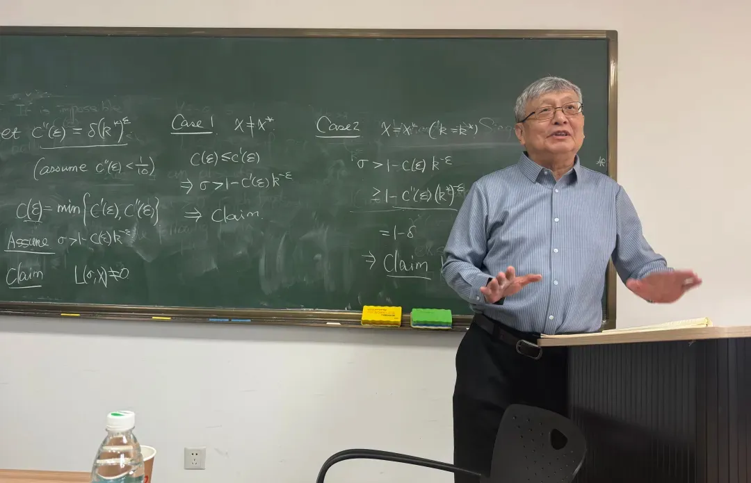 张益唐教授首先回顾了素数分布的研究历史,并推导了欧拉求和公式;深入解析了算术级数中素数分布与狄利克雷L函数零点特性之间的关系,进而阐明了Landau-Siegel零点问题与广义黎曼猜想之间的联系。随后,他从Dirichlet的经典研究切入,梳理了零点问题的发展脉络,明确了研究的基础前提,厘清了其与广义黎曼猜想的区别,并重点剖析了西格尔定理中“常数无效性”这一核心难题。张教授聚焦问题的本质,系统梳理了研究路径,介绍了Heath-Brown在相关理论中的最新贡献,并结合实例说明了该问题与数论其他核心领域的深刻关联,指出研究已实现从定性分析到定量估计的重要转化。最后,他阐释了该零点问题在数论中的关键意义,聚焦于“若存在接近1的实零点,能否导出矛盾”这一核心命题,分享了关键结论与技术细节,并鼓励师生打破传统方法的束缚,勇于挑战这一难题。讲座期间,张教授还耐心回答了师生们的提问。
