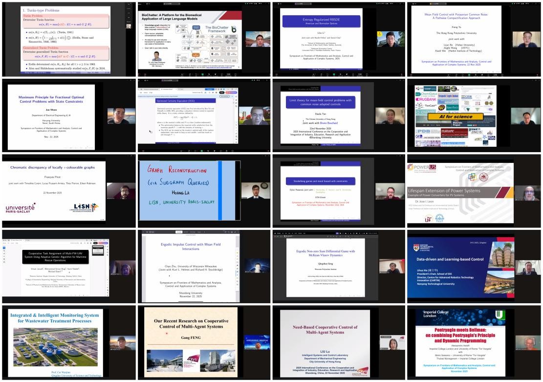 会上,来自英国帝国理工学院、华威大学,法国巴黎萨克雷大学,瑞士苏黎世联邦理工学院,西班牙塞维利亚大学,新加坡南洋理工大学,韩国基础科学研究院、汉阳大学,美国俄亥俄州立大学、威斯康星大学密尔沃基分校、伍斯特理工学院,澳大利亚新南威尔士大学,墨西哥新莱昂州自治大学,香港中文大学、香港理工大学、香港城市大学以及青岛科技大学等的20位知名专家学者就控制理论、多智能体系统协同控制、无人机系统协同任务分配、光伏系统功率变换器、极值图论及其应用、生物信息学与图表示AI、拓扑数据分析与深度学习、随机控制、倒向随机微分方程、平均场理论、金融数学等领域的学术前沿研究及产业创新应用作报告分享。专家学者的精彩报告和深度的交流研讨获得与会师生的广泛好评。